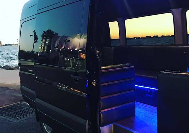 Serving both small and large groups our Mercedes sprinter limo van will match your luxury transportation needs. From Downtown Sarasota nightclubs, to weddings, high school dances, sporting events and corporate outings, you can always count on us for all your party bus needs.